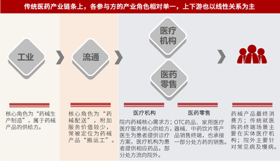 图表:传统医药产业各参与方角色较为单一