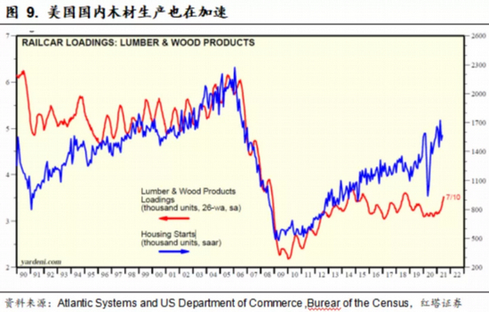 就业恢复缓慢使得美国国内的生产修复并不顺利,木材等商品的供给依旧是缺乏弹性的。