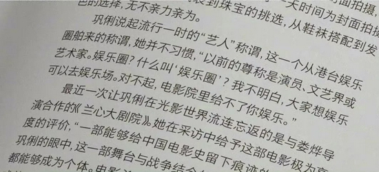 和她一类的演员,很少出现在娱乐新闻里。这几天她出现了,事由是接受了一本杂志的采访,谈到了娱乐圈、艺人。