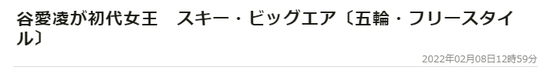 因为自由式滑雪大跳台是新增项目,日本时事通讯社直呼,谷爱凌成为“初代女王”。