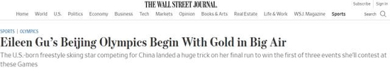 谷爱凌夺金后,《纽约时报》、《华尔街日报》、俄罗斯卫星网、路透社、韩联社等全球多家主流媒体也纷纷发布消息,祝贺“中国天才少女”、00后选手谷爱凌完成绝地反击。