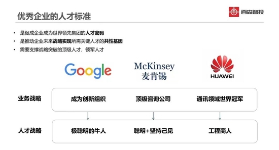 无论是谷歌、麦肯锡还是华为,他们都在努力寻找什么样的人是最合适的。2004年,《纽约时报》有篇报道提到,谷歌当时以区区的2000人军团PK掉了微软3万人,这是1:15的比例,彼时的谷歌才成立6年。所以强大的人才密度是能够战胜强敌、异军突起的。