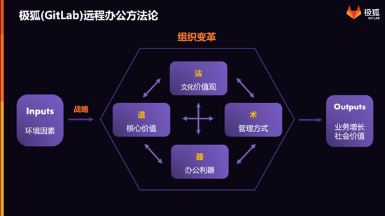 基于以上挑战,陈冉及其核心团队结合现有方法论和国外先进理念,通过极狐的实践,打造出了远程办公的基础方法论。