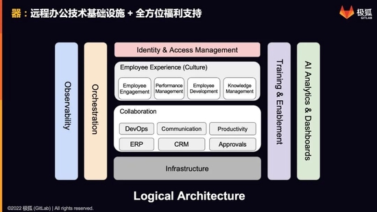 除此之外,更重要的是远程办公基础设施。陈冉介绍道,全体员工通过使用公司自己开发的产品——极狐GitLab,完成日常远程办公所涉及的异步协作问题。包括源代码管理、文档协同、安全管控、团队与项目管理、DevOps 自动化、制品和容器镜像管理、静态网站托管等。不止技术团队,销售、HR、市场等团队,也在使用,在极狐(GitLab),人人都是产品体验师。