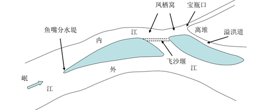 为什么这么说呢?因为在这样一个高度,内江在洪水季节裹挟的飞沙,有75%会随江流涌过飞沙堰,冲入主河道。但是,仍然有25%的砂石会留在飞沙堰前面的河道里,于是会在这里形成一个“凤栖窝”。凤栖窝每年都需要进行人工清理,即“淘滩”。