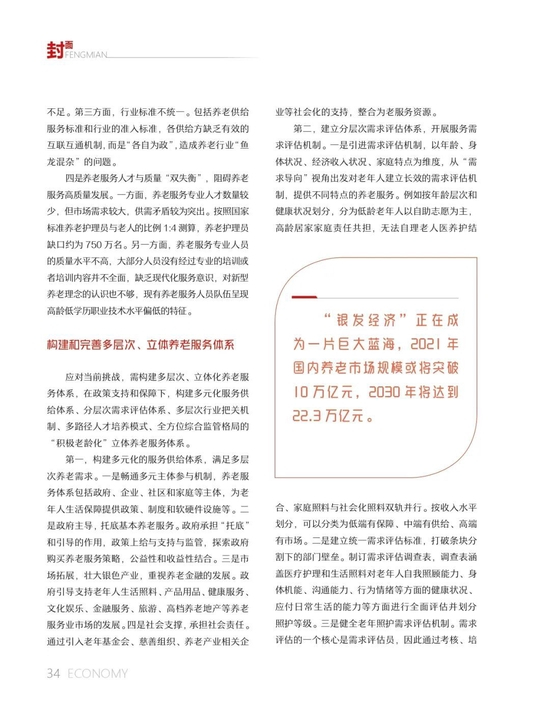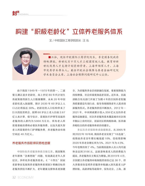 在重阳节来临之际,我们再次关注中国式养老之路,探寻养老服务体系的未来。汪泓院长在接受《经济》杂志专访时表示,中国的养老服务市场具有很大的需求空间,应对当前的挑战,我们需逐步构建多层次、立体化养老服务体系,有效满足老年人多层次、多样化的养老服务需求。