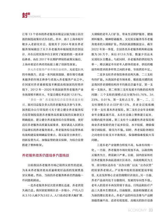 目前我国养老服务市场已取得实质性的进展,为未来养老服务更高质量和更好品质的发展奠定了坚实基础。然而,当前的养老服务体系仍然面临一些问题和挑战。