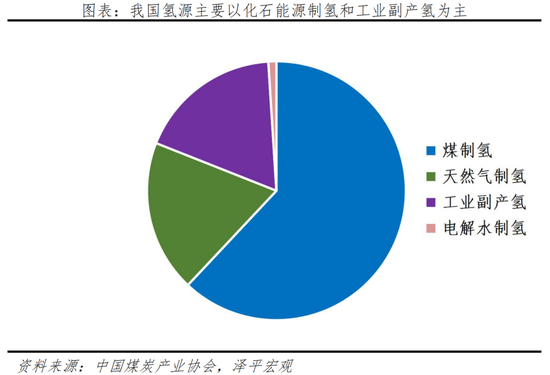 氢储能技术的发展需要重点关注制氢技术和氢储运技术两大环节。在制氢环节上,当前化石能源制氢和工业副产氢占据主流。具体来看,我国制氢来源60%以上为煤制氢,19%天然气制氢,18%工业副产氢,仅1%为电解水制氢。