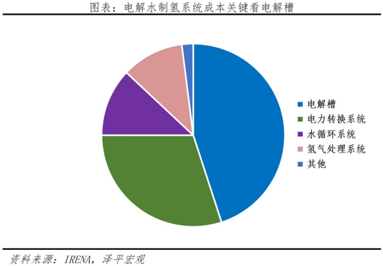 未来通过绿色能源电解水制氢气,是将其他形式能源转化为氢能存储的关键。在此环节中,一是需要重点关注制氢的用电成本,二是要关注电解槽技术的突破。