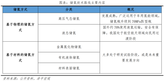 在材料存储的技术路线上,包括金属氢化物(固体介质)储氢、有机液体储氢在内的诸多存储储氢技术大多仍处于研究阶段,还有待突破,有望在未来技术成熟下成为氢能源市场商业化的补充。