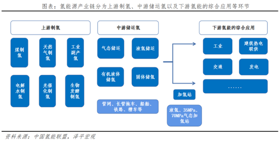 氢能源产业链涉及多个行业多个领域,总体上可分为氢能源上游的供给和下游需求两个方面。具体来看,氢能源产业链的供给端包括上游制氢、中游储运氢和加氢站建设等三大环节;氢能源产业链的需求端则为下游氢能源的综合运用环节。