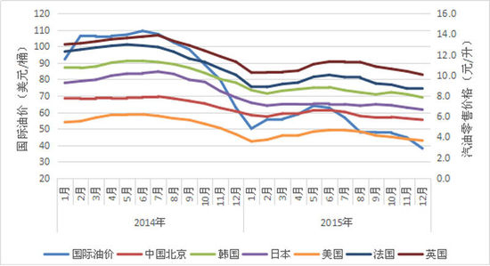 自2014年下半年国际原油价格大幅下跌以来,在实行油价管制的国家,由于政府采取减少燃料补贴或增加税收等行政手段进行干预,成品油零售价格降幅有限,一些国家零售价格甚至不降反升。