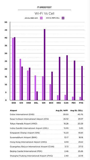亚洲繁忙机场上网哪家强 WiFi网速迪拜第一