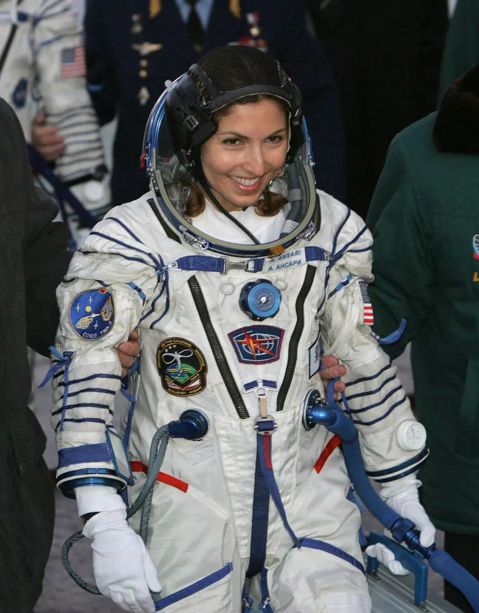 2006年9月18日,伊朗裔女富豪阿努什•安萨里(Anousheh Ansari)在40岁生日这天,搭乘俄罗斯“联盟号”宇宙飞船,飞往距地球354公里的国际空间站,成为全球首位女性太空游客。