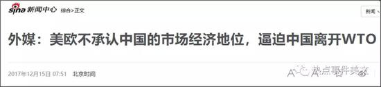 而在2001年中国加入世贸组织时,根据中国加入WTO议定书的一项规定,将中国视为“非市场经济经济”国家的适用期限是15年,将在2016年12月11日失效。