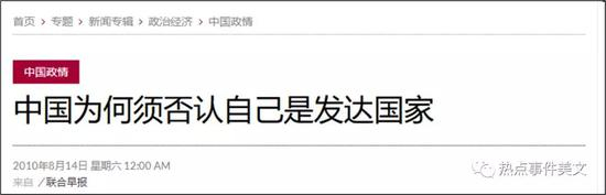 在2010年的时候,中国国民生产总值超过日本的时候,国际上就出现一个巨大的争论:很多国家认为中国已经是发达国家了。