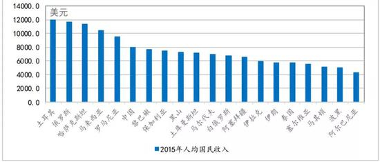 世界银行将人均收入1045美元至12735美元之间的国家列为中等收入经济体,其中以4126美元为界,可将45个中等收入经济体分为收入相对较高的上中等收入经济体和收入相对偏低的下中等。