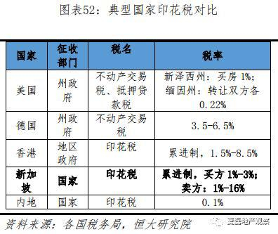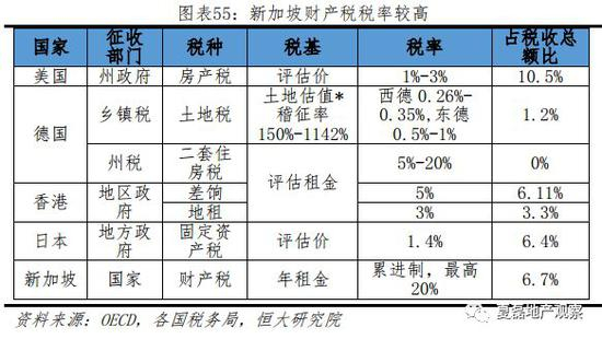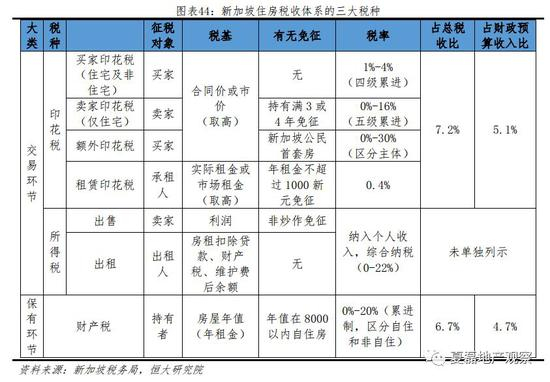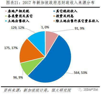 新加坡房地产相关税种包括印花税、财产税和所得税,2017年前两项合计91.2亿新元,占总税收13.9%,占财政预算收入9.8%。