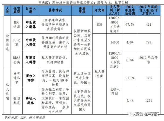 私人住宅是对组屋制度的有效补充,是新加坡住房供应体系必不可少的部分。组屋主要是面向新加坡80%左右的中低收入公民群体,一般只有新加坡公民家庭才可申请购买新组屋,且严格限制家庭收入上限,高收入新加坡公民群体及永久居民、外国人的住房需求主要是通过私人住宅市场满足。此外,私人住宅作为一种市场化住房供应方式,可为高收入人群及外国人提供投资的机会,而组屋是由政府主导的非市场供应模式,投资空间极为有限。
