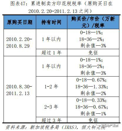 ②卖家印花税:征收标的特定、税率按持有年限累进。征收标的须符合三个条件:一是只针对所有住宅类房产及土地征收;二是原购买时间在2010年2月20日以后;三是出售时持有时间是否满足一定年限,若已满,则免征。税基与买家印花税一致,税率仍采用累进制,但根据购买时间、持有时间、买价/市价综合确定。新加坡政府并未采取一刀切式的“限售”,而是按照持有年限累进印花税率实现抑制投机的效果,一般持有年限越短,则税率越高,最高可达16%。
