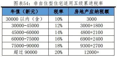 超额累进制税率,并对自住房屋实施低税率。自住型住宅包括房屋所有者居住的公寓、组屋及其他住宅,由于新加坡政府鼓励居民住房自有,自住型住宅的税率较低,目前税率按照年值七级累进,起征点为8000新元,最高税率为16%。对于拥有多套房屋的家庭,只有一套住宅可享受自住型住宅的低税率优惠,其余适用非自住型住宅税率。而非自住型住宅一般是指出租或空置的组屋、公寓及其他物业,适用五级累进税率,无免征额,最高税率为20%。此外,对于其他类型的房屋,如俱乐部、牧屋、幼儿园等,一律适用10%的税率。