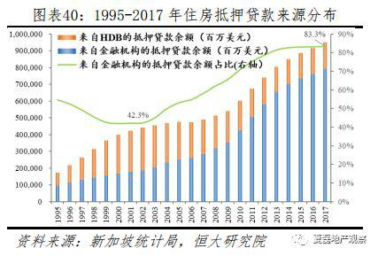 二是政府的推动力量。2002年,新加坡政府规定,若借款人拖欠抵押贷款,银行将对抵押房产具有首位索赔权(在此之前,中央公积金具有首位索赔权),这一举措直接推动了商业银行进入住房市场。自2002年后,来自金融机构的抵押贷款余额占比显著提升,从42.5%提升至2017年的83.4%。