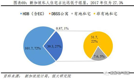 私人住宅数量较少、价格更高。截至2017年底,私人住宅仅有38.4万套,仅占存量住房的27.3%,其中有地私宅7.6万套,占比5.4%,非有地私宅30.8万套,占比21.9%,远低于组屋的72.1%;价格远高于组屋,2018年8月,非有地私宅的均价为1476新元/平方英尺,有地私宅均价为1365新元/平方英尺,分别为同期转售组屋的3.6和3.3倍。