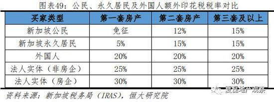 新加坡政府实施差异化累进制税率,对本国公民、首套住房均实施减免优惠,鼓励居民购房自住,打击投机需求。