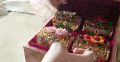 光是结婚请帖就价值3万。一个精致的盒子里,放着邀请函和一个更精美的盒子。