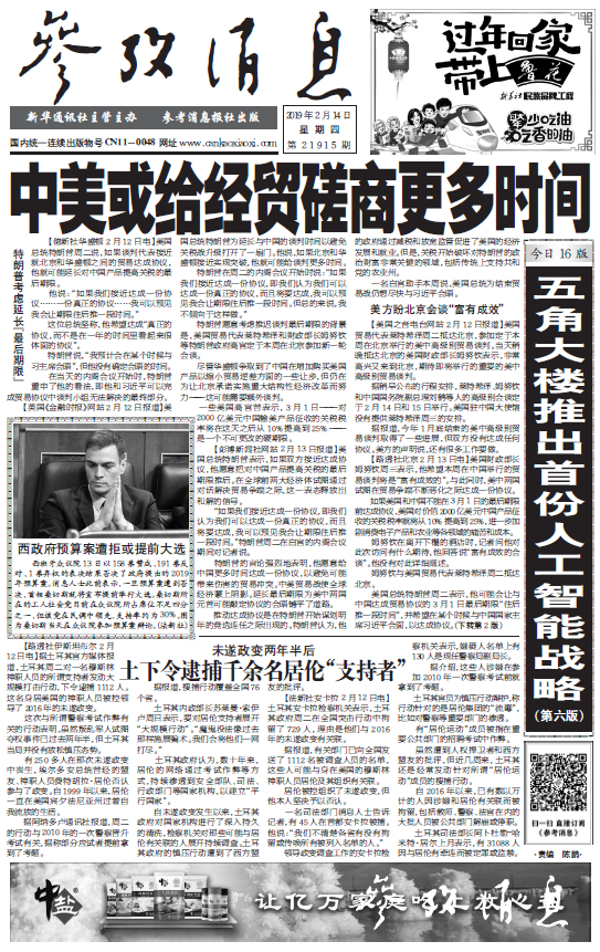 【英国《金融时报》网站 2月12日报道】美国总统特朗普曾为延长与中国的谈判时间以避免关税战升级打开了一扇门。他说,如果北京和华盛顿接近实现突破,他就可能给谈判更多时间。