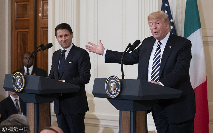 2018年7月30日,特朗普会晤到访意大利总理孔特 @视觉中国