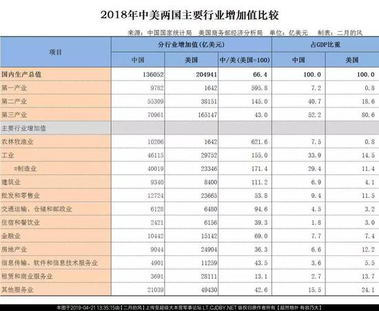 这不,最近一张中美GDP分行业对比图横空出世,赢得吃瓜群众连声叫好。