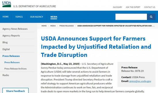 人民日报在5月23日的《算算“关税账”,美国农民损失有多大》一文中指出,由于受到美国关税打击,中国、欧盟、印度和土耳其等国,先后宣布对美国的食品和农业出口征收新的报复性关税,美农成为贸易报复“众矢之的”,农业收入在短短两年内减少了50%,破产数量明显上升。