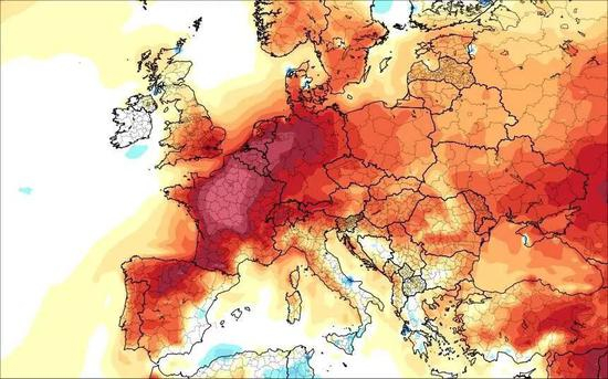 比如勇破40度,朝着50度体感温度蹦跶的西欧国家法国:
