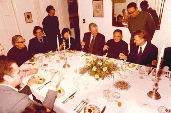 几个月后,当我的父亲和母亲在他们的家中接待邓小平和他夫人时,我父亲打趣国务卿赛勒斯·万斯说,我母亲上次祝酒之后,国务卿万斯先生就打算禁止她出国。