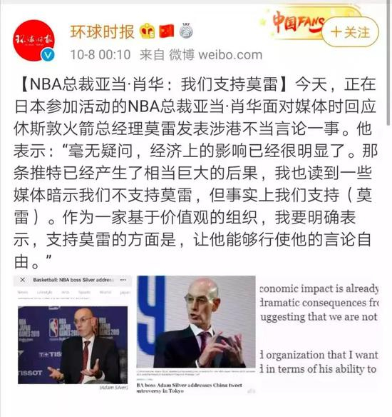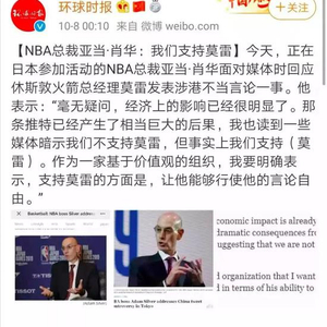 一些媒体暗示我们不支持莫雷,但事实上我们支持;