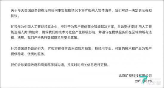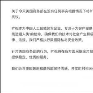“针对美国商务部的行为,旷视将在各方面采取应对预案,持续用专业、可靠的技术和产品为客户提供稳定、优质的服务。”旷视科技还表示,“我们会与美国政府和商务部保持沟通,并实时对相关信息进行更新。”