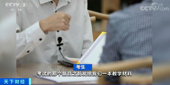 考生:考试的那个题目,之前发给我们一本教学材料,后面有一些教学题目,我做了一道题,我就知道这个题目写过,题目完全一样,后面就都有答案。是教材上面出现过的题目,一模一样,选项都没改,我当时感觉这考试有点水。