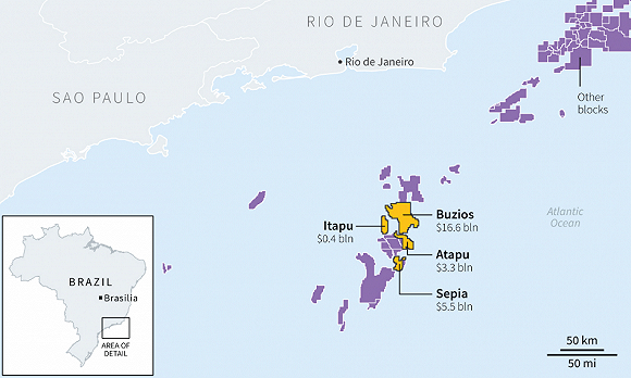 此外,巴西石油公司还以176.6亿雷亚尔(约合人民币299亿元)的价格,独家中标伊塔普(Itapu)区块。