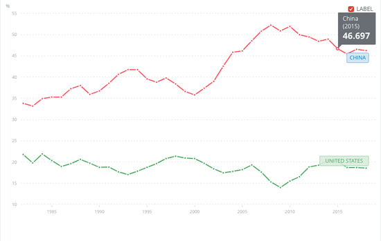 1982-2018中美储蓄率对比图