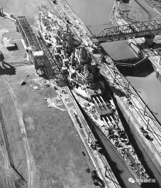 1945年,美国海军密苏里号战列舰通过巴拿马运河、