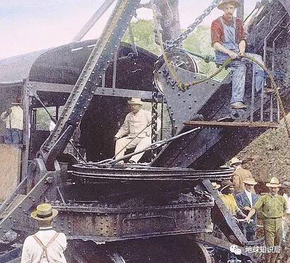 1906年罗斯福坐在挖掘巴拿马运河的挖掘机上