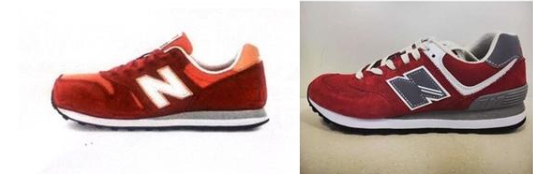 左图为“New balance”运功鞋,右图为纽巴伦运动鞋。 浦东新区法院供图