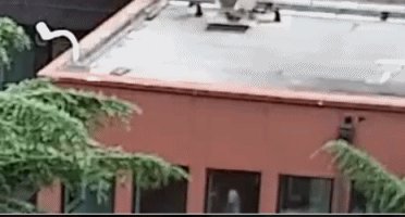 领事馆正门紧闭,直播主画面改从屋顶上方切入,可见领事馆主体建筑及门口。