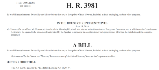 为此,美国在2019年推出《食品日期标注法案》(Food Date Labeling Act of 2019)。