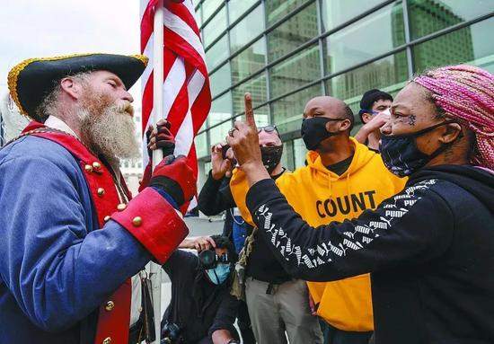 ·当地时间5日,密歇根州一计票中心外双方支持者发生争执。