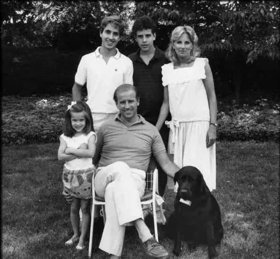 ·1972年一场车祸夺走了拜登前妻和小女儿的生命。图为拜登和现任妻子一家五口照片。