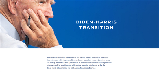 ·“拜登-哈里斯政府过渡网站”首页。