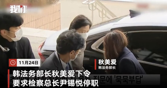 11月24日,秋美爱勒令尹锡悦停职。韩国检察官集体抗议,各党派也纷纷卷入,遂引发当前韩国政坛乱局。