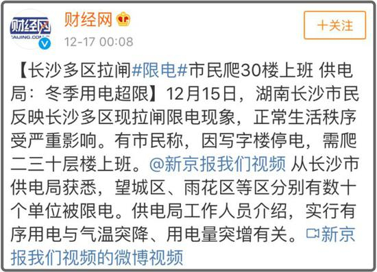 近日,有多名湖南长沙的网友在网络上称,他们所在的地区拉闸限电。没有电梯可以使用,上下二三十楼的高层都只能靠爬,而且还不能开空调等设备,连取暖都受到了影响。